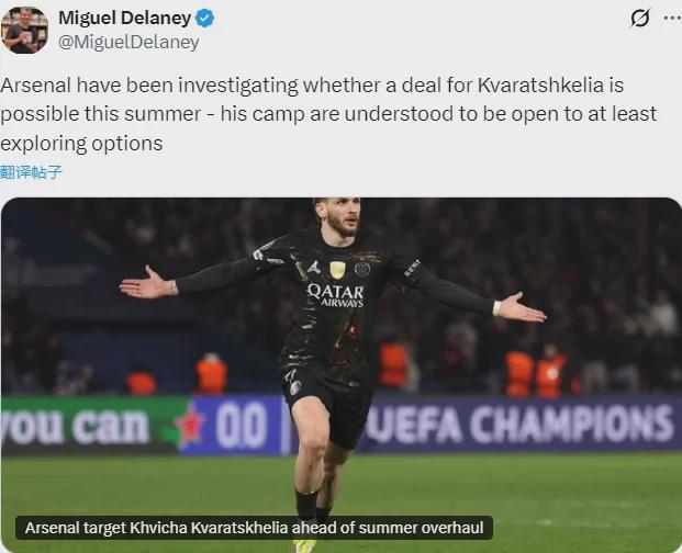 独立报记者MD消息,阿森纳正探索今夏收购克瓦拉茨赫利亚,并且这名球星的阵营对这个可能性持开放态度,但巴黎可能会采取强硬态度。